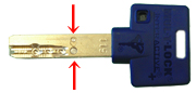この小さな丸いピンが上下に動き、ピッキングの防止とカギの複製を防ぎます。