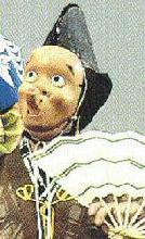 火吹き竹で火を吹く時のように口をとがらせ、 一方の目を細めた面白い 顔のお面が神楽などの道化役として使われます。 「ひょっとこ」は「火男・・ひおとこ」のなまったものです。